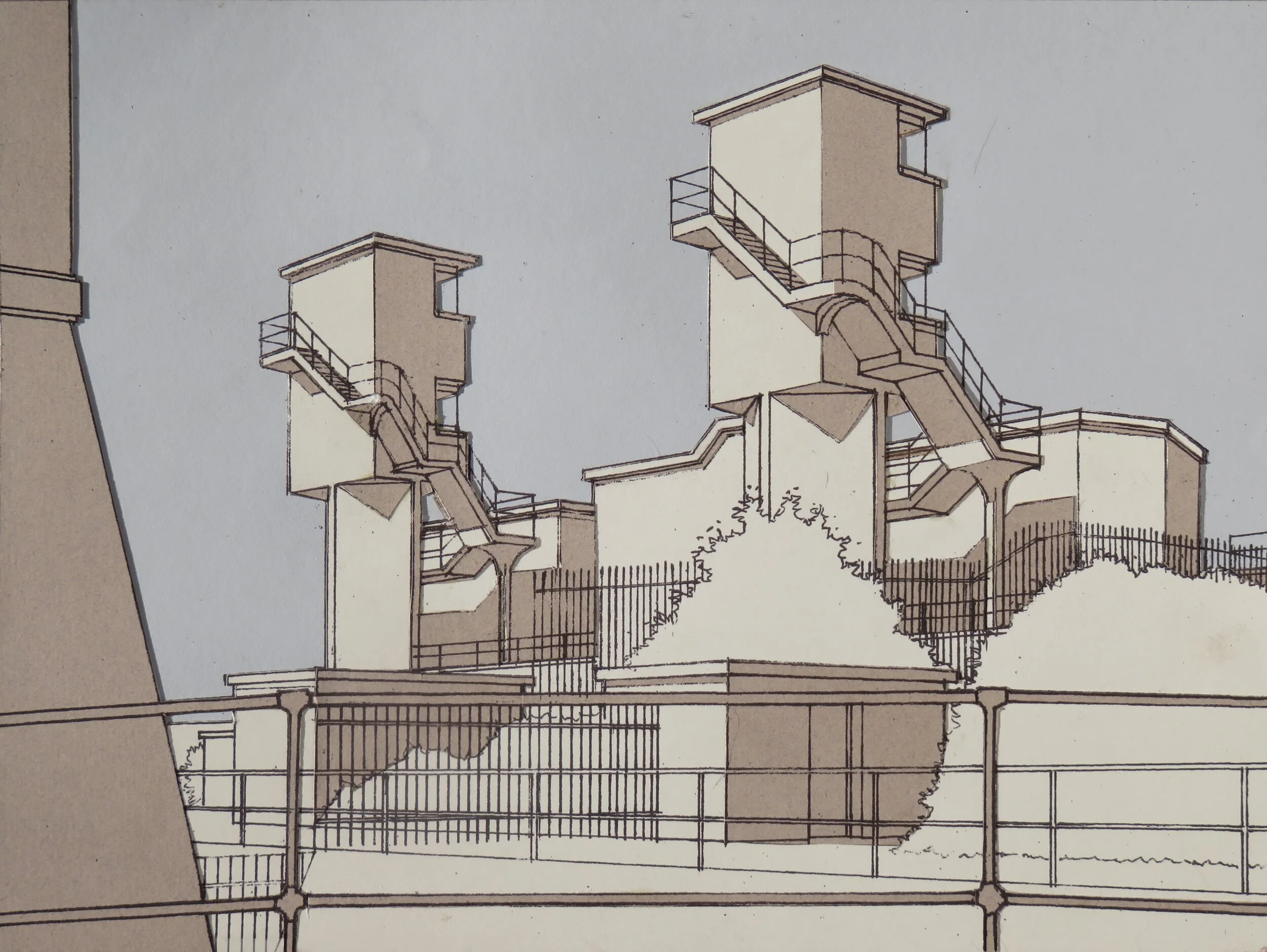 Aldeburgh Lookout Pencil + Crayon A3 1978